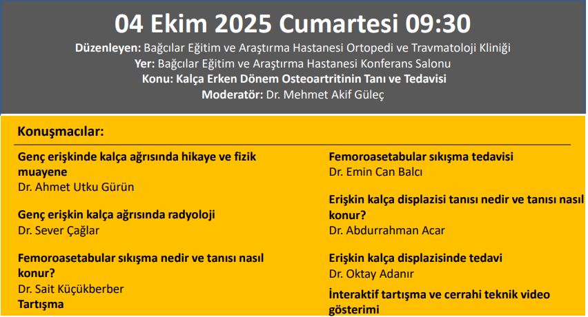 ''Kalça Erken Dönem Osteoartritinin Tanı ve Tedavisi'' Bağcılar Eğitim ve Araştırma Hastanesi Ortopedi ve Travmatoloji Kliniği