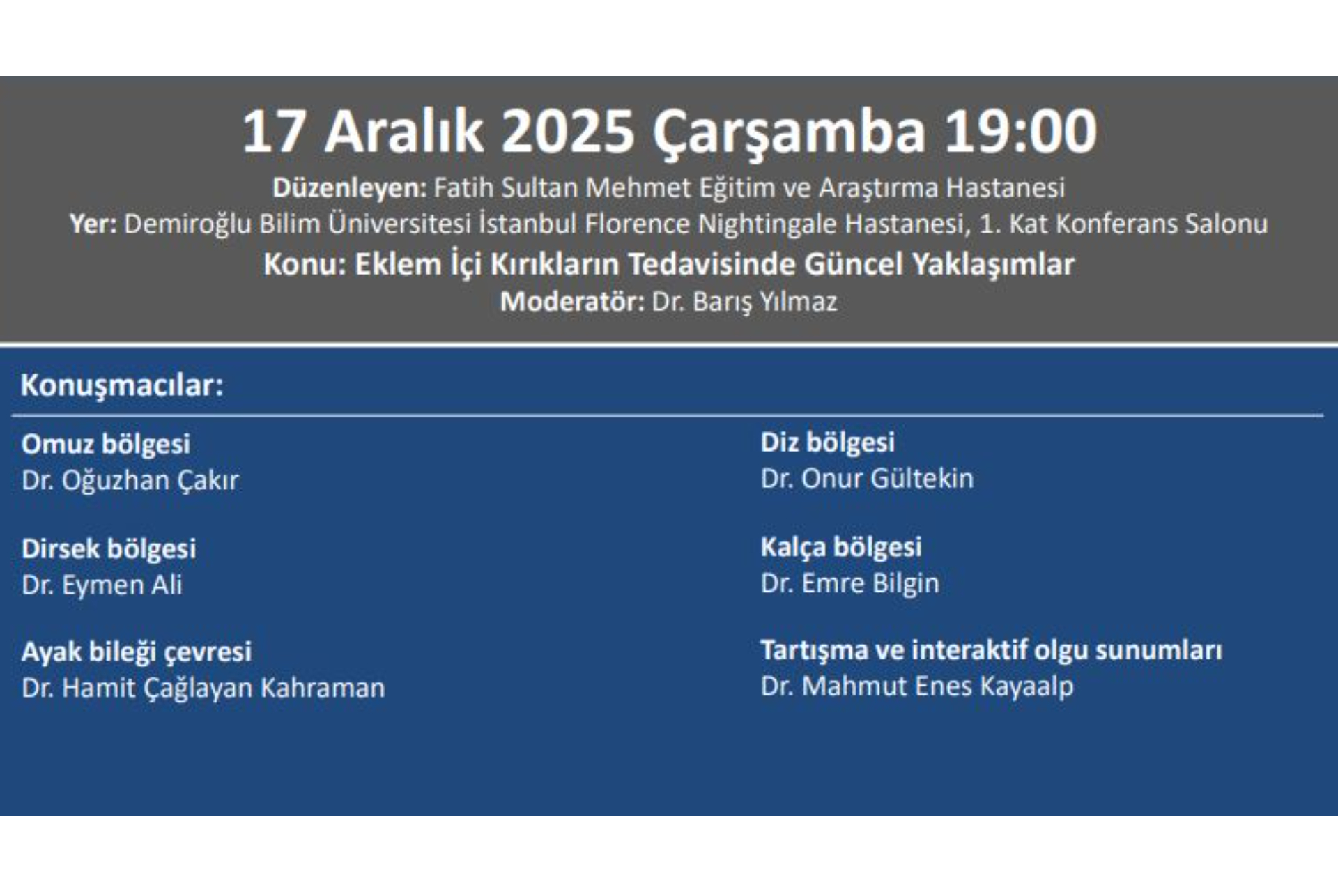 17.12.2025 TOTDER Travma - ''Eklem İçi Kırıkların Tedavisinde Güncel Yaklaşımlar'' Fatih Sultan Mehmet Eğitim ve Araştırma Hastanesi Ortopedi ve Travmatoloji Kliniği