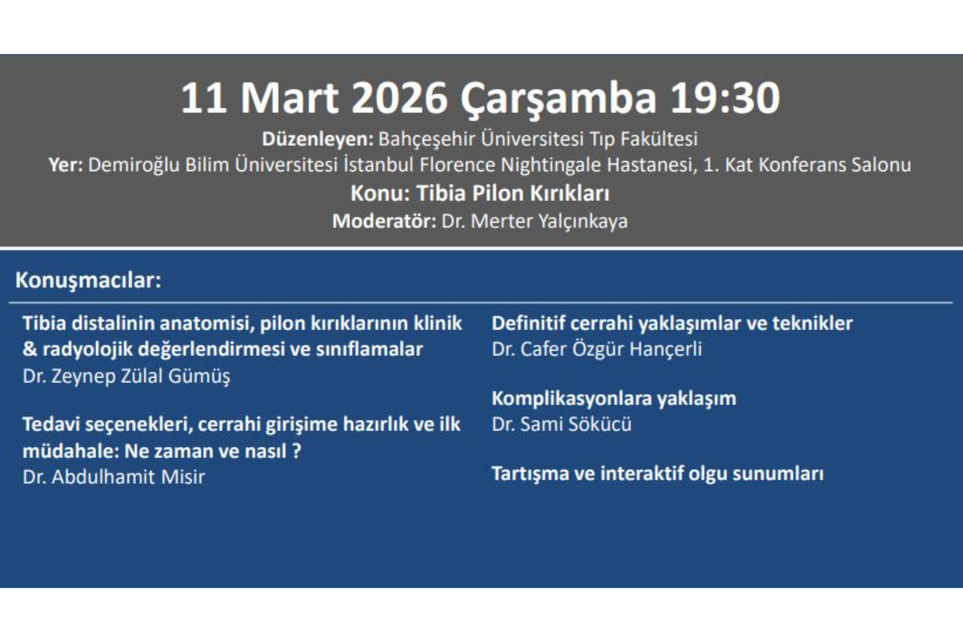 11.03.2026 TOTDER Travma - ''Tibia Pilon Kırıkları'' Bahçeşehir Üniversitesi Tıp Fakültesi Ortopedi ve Travmatoloji Anabilim Dalı